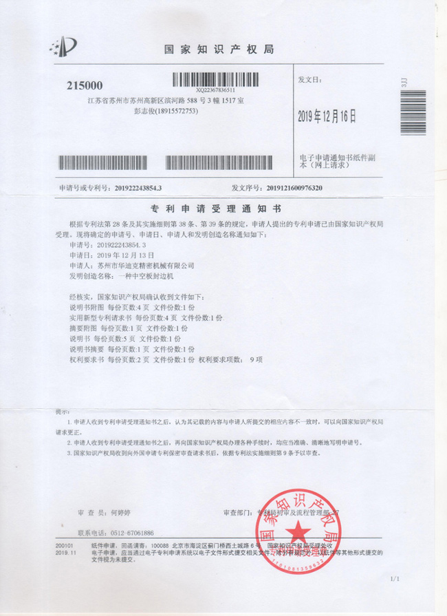 專利申請受理通知書201922243854.3